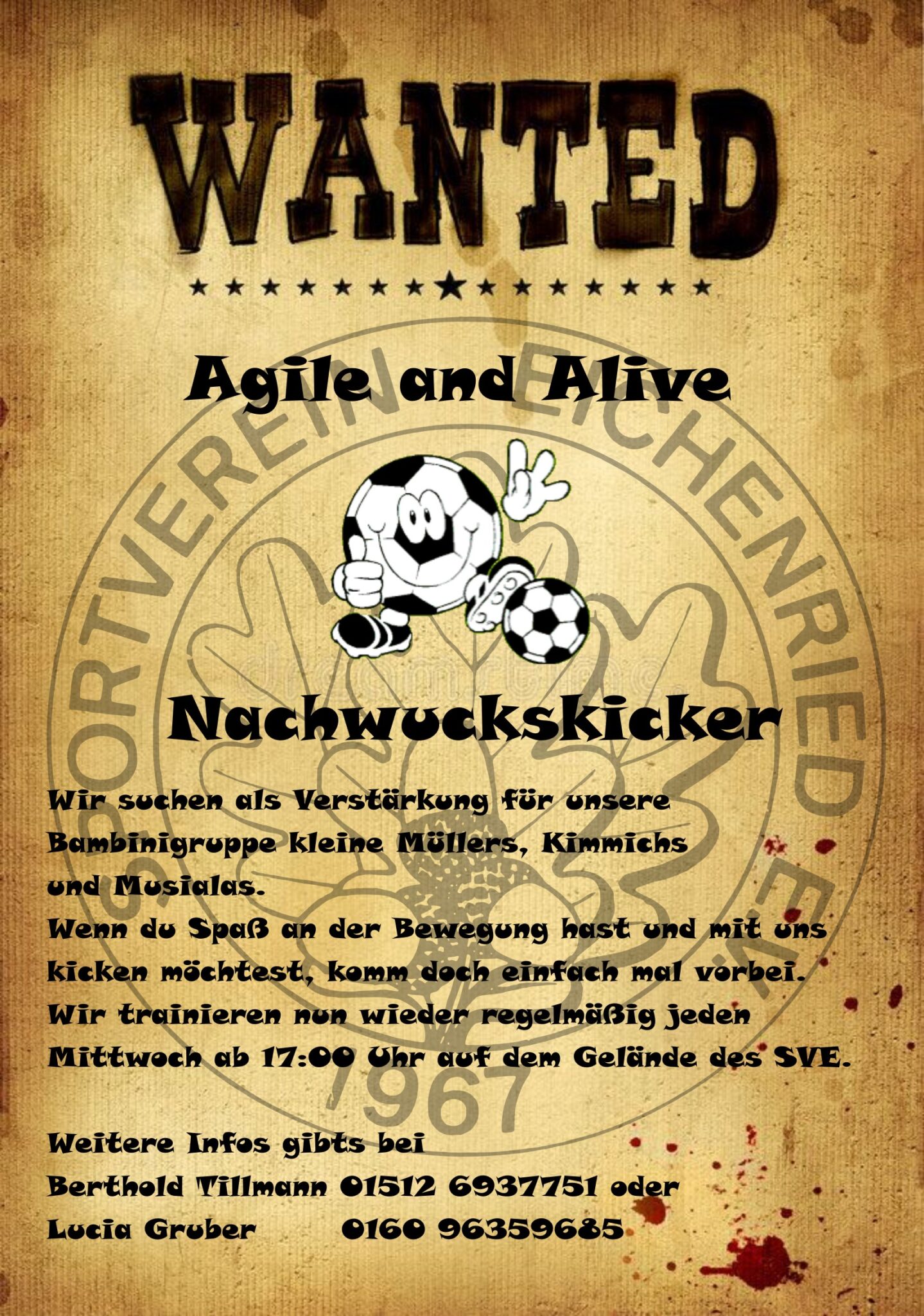 Immer mittwochs trainieren unsere jüngsten Kicker. Bei ihnen stehen vielseitige Bewegungspiele und der spielerische Umgang mit dem Ball im Vordergrund. Neuzugänge (ab ca 5 Jahren) sind jederzeit willkommen